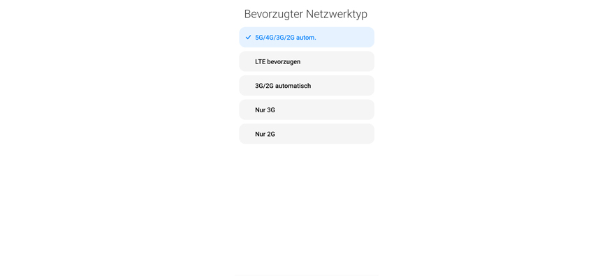 Je nach Aufenthaltsort sind unterschiedliche Netzwerktypen verfügbar. Stell den schnellsten Netzwerktypen ein, damit Dein Handy immer das Netz mit der schnellsten Daten-Geschwindigkeit und dem besten Empfang findet.