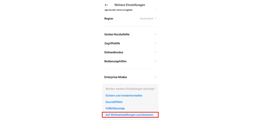 Wähl Auf Werkseinstellungen zurücksetzen.