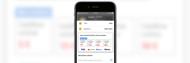 Lad Dein Guthaben mit der MeinVodafone-App von überall auf. Das geht online, per Bankeinzug oder per Anfrage bei Deinen Freund:innen. Oder Du nutzt eine CallNow-Guthabenkarte.