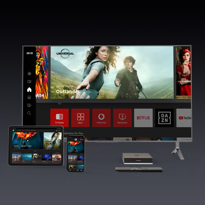 Alle TV Optionen nutzt Du mit Deiner GigaTV Box und Deinem Fernseher. Vodafone Premium (Plus) und die internationalen TV-Pakete nutzt Du außerdem mit der GigaTV-App oder der GigaTV Mobile-App.