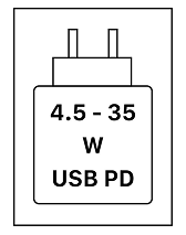 • Kompatibles Netzteil: 4,5 – 35 Watt USB PD