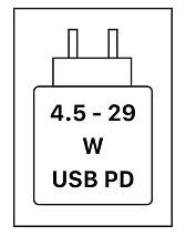 • Kompatibles Netzteil: 4,5 – 29 Watt USB PD