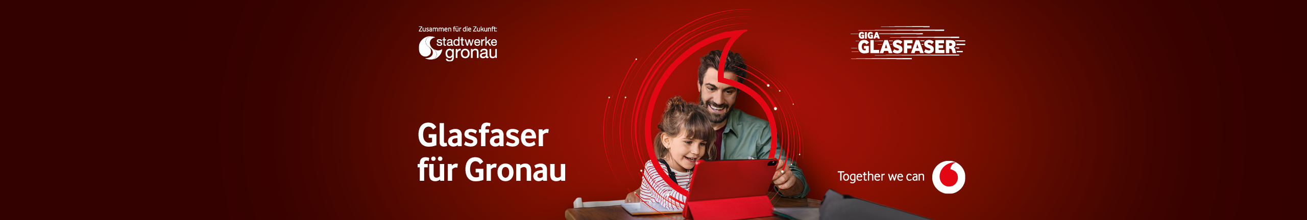 Seit dem 3. November 2021 sind wir Kooperationspartner für den Glasfaser-Ausbau in Gronau und Epe. Die Arbeitsteilung ist leicht beschrieben: Die Stadtwerke kümmern sich um die Planung und den Bau sowie die spätere Wartung des Netzes. Vodafone pachtet das Netz und übernimmt den aktiven Betrieb und die Vermarktung der Produkte gegenüber den Endkunden sowie die überregionale Netzanbindung außerhalb Gronaus.