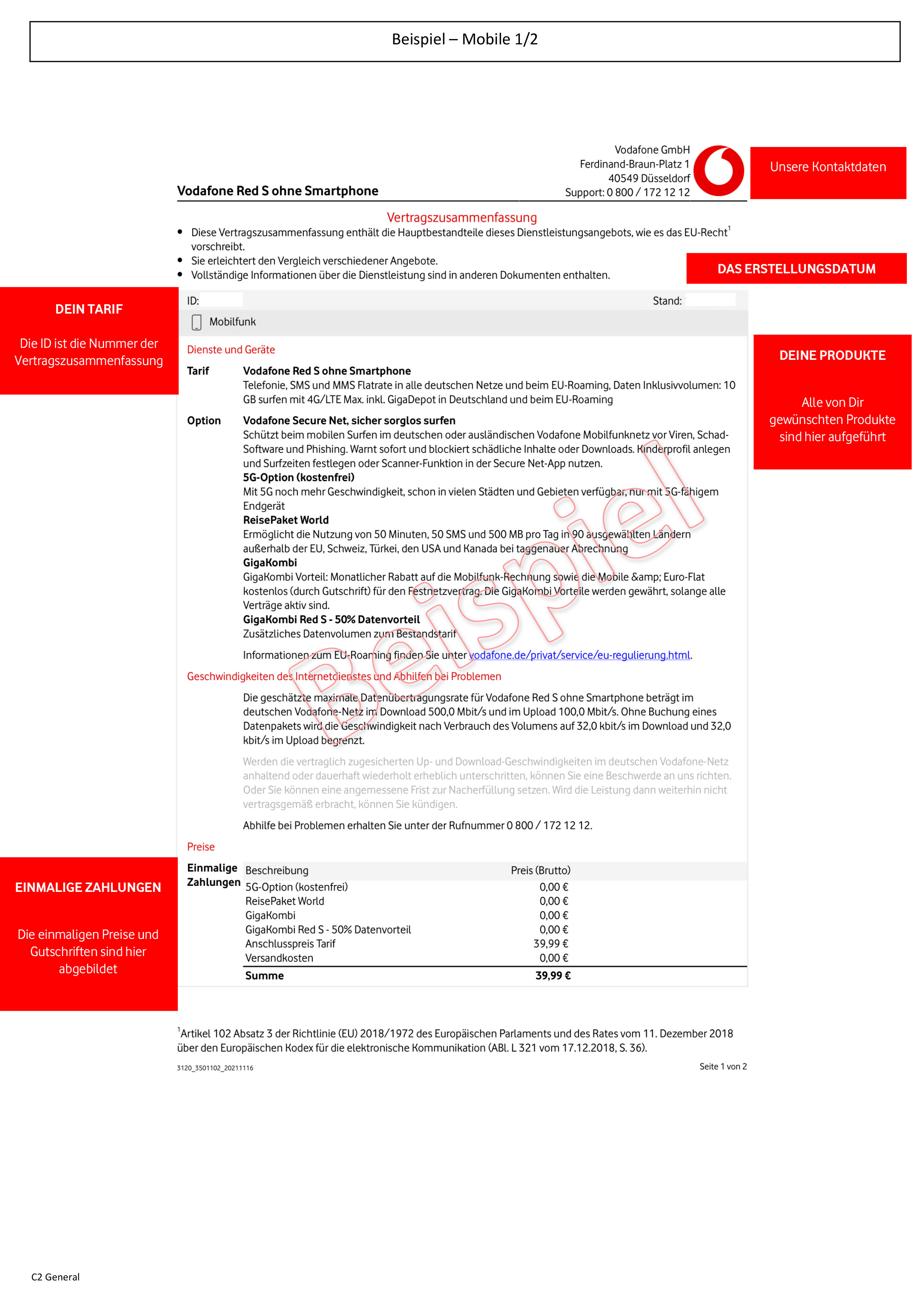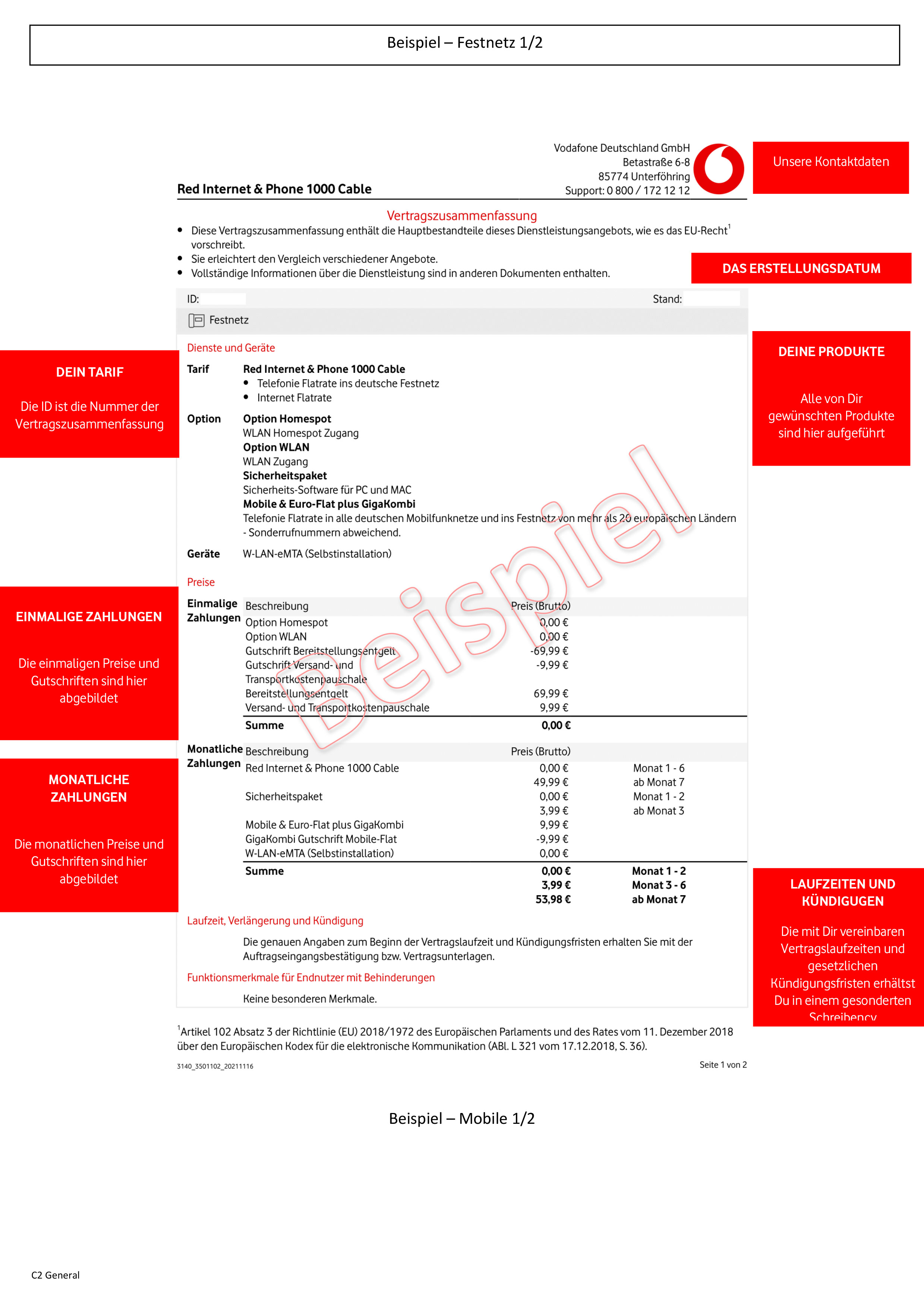 Wir wollen, dass Du einen guten Überblick über die Dir zugesagten Tarife, Optionen und Geräte bekommst. Bevor Deine Buchung von Dir beauftragt wird, empfehlen wir Dir Dein persönliches Dokument durchzulesen und dann diese zu bestätigen.