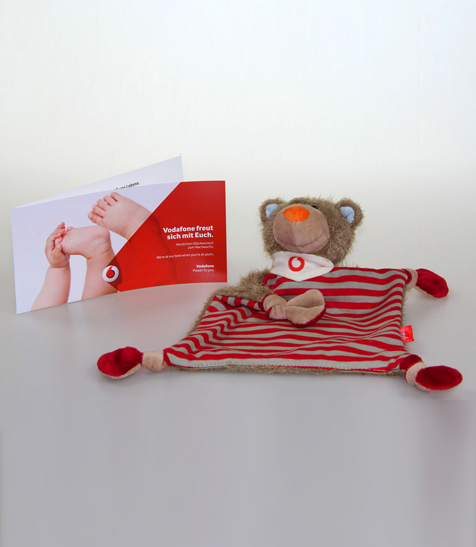 Neues Leben ist immer ein Grund zur Freude. Wir begrüßen jedes Mitarbeiter-Baby mit einem Willkommenspaket auf dieser Welt. Drin ist ein kuschelig weiches Schnuffeltuch von Sigikid.